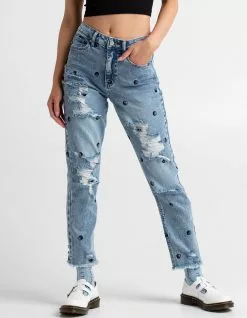 TINSELTOWN Womens Yin And Yang Mom Jeans