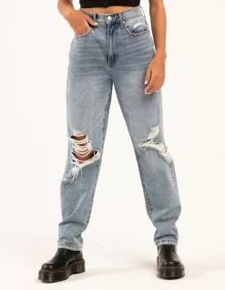 RSQ Vintage Mom Womens Wash Black Ripped Jeans