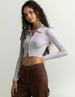 FULL TILT Mushroom Womens Ribbed Cardigan