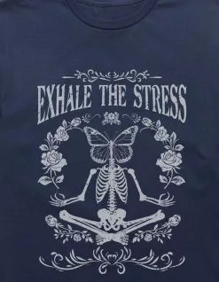 Art/Design SKELETON Exhale The Stress Distressed Unisex Tee