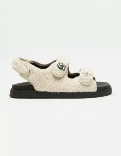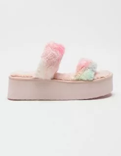 SODA Dual Strap Faux Fur Womens Flatform Sandals