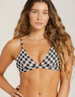 FULL TILT Gingham Textured Fixed Triangle Bikini Top