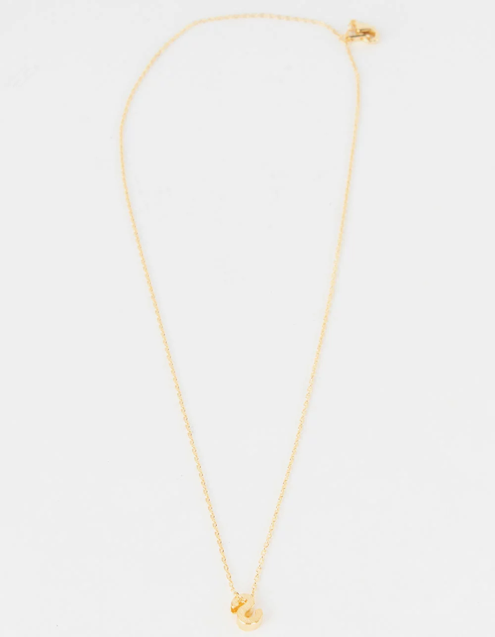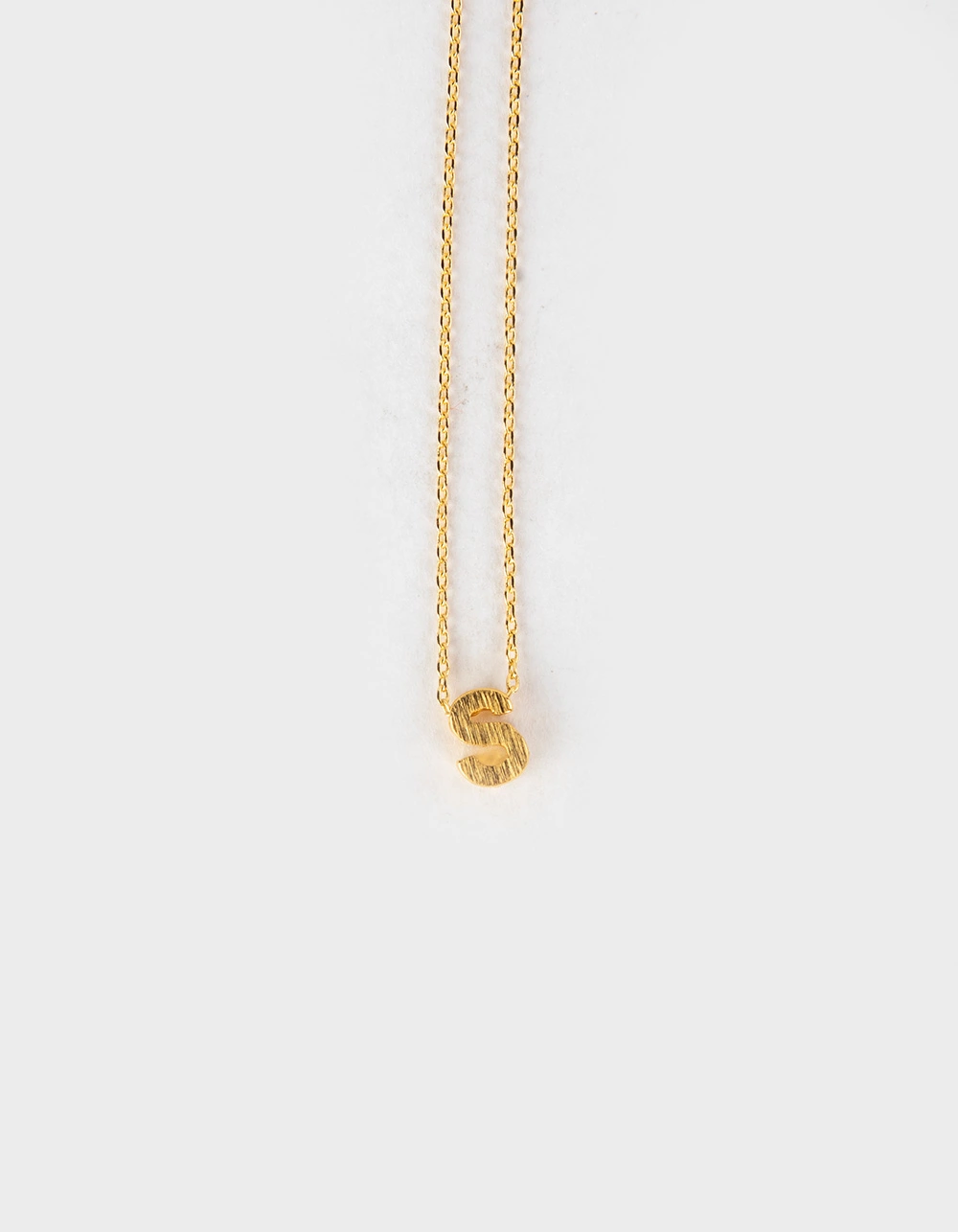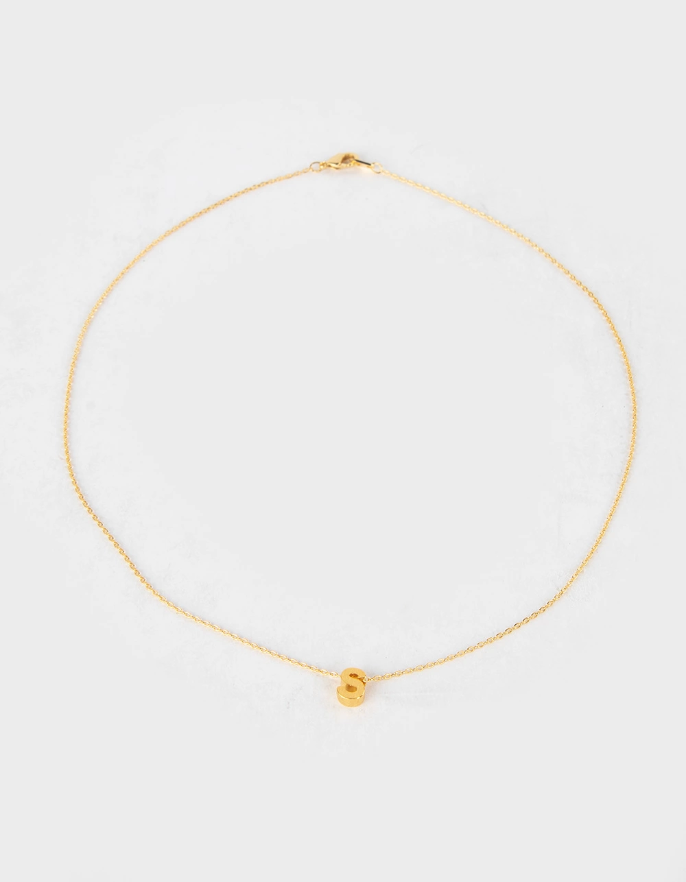 18K Gold Dipped Initial S Necklace. Dainty chain necklace with small initial pendant. Lobster clasp closure. Approx. length: 16 inches. 18K gold dipped to prevent tarnishing. Imported.