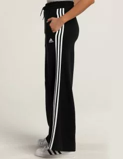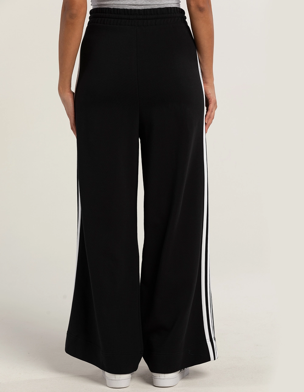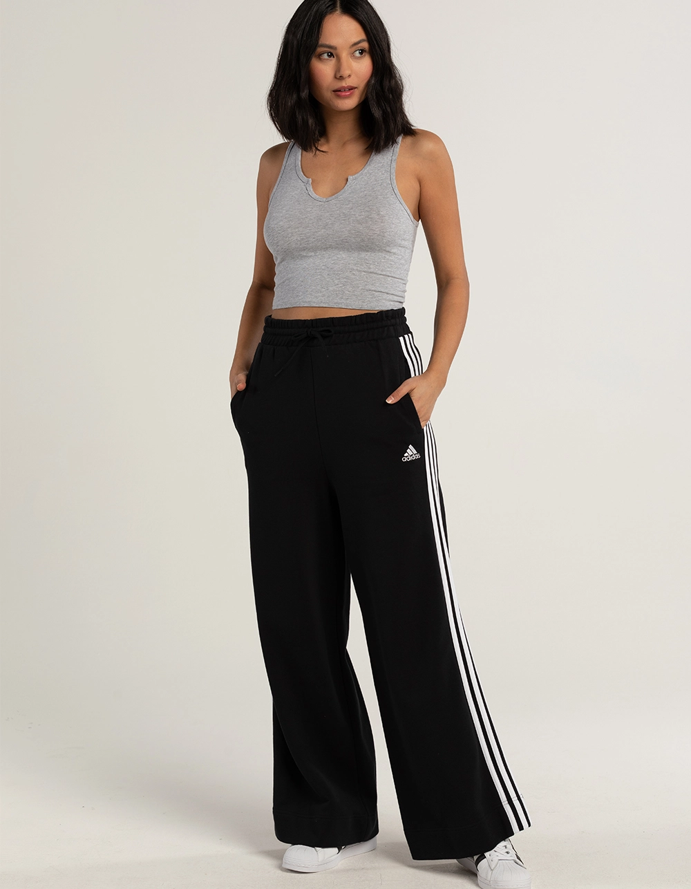 Adidas 3-Stripe Wide Sweatpants. Elastic waistband with drawstrings. Classic 3-stripes down the length of the pantlegs. Adidas embroidery on left leg. Welt pockets. Wide leg. 100% Cotton. Machine wash. Imported.