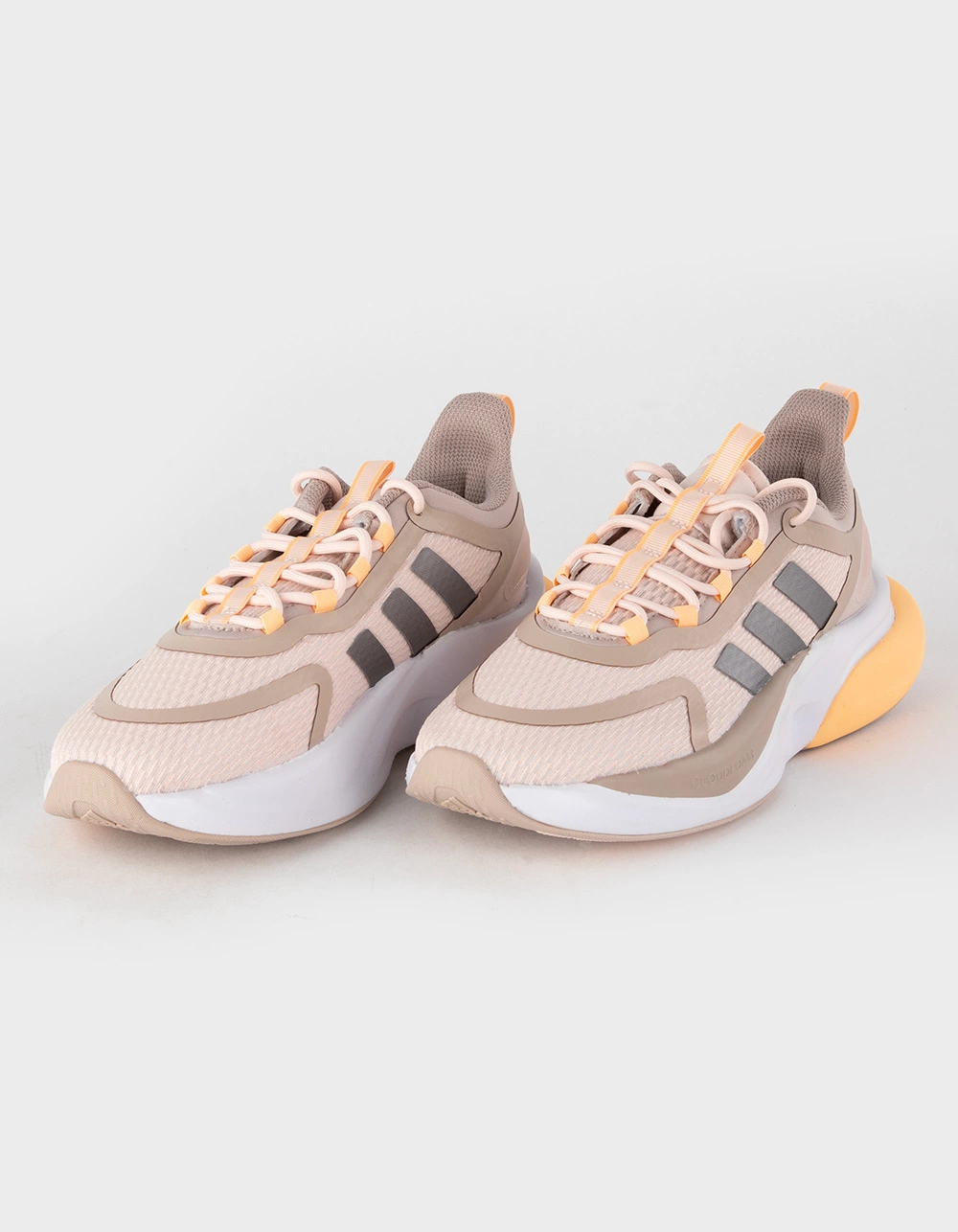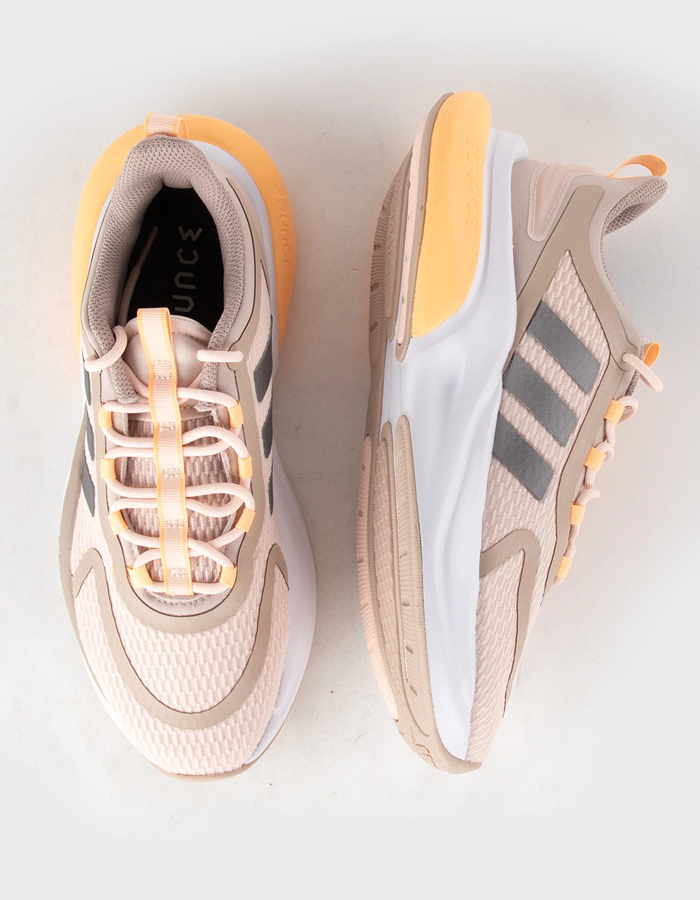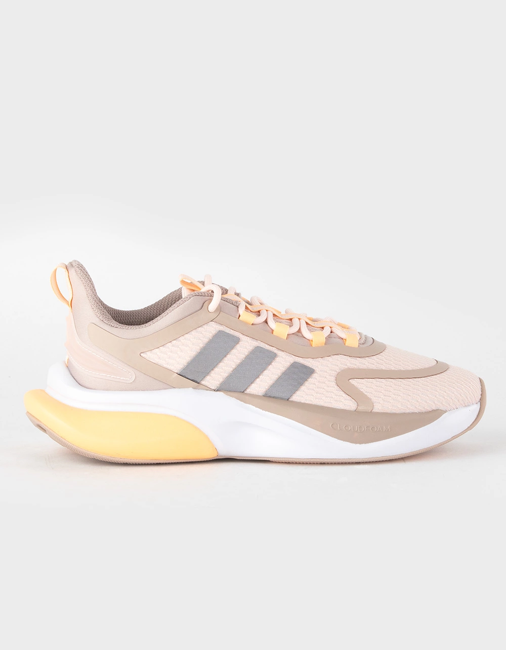 Adidas AlphaBounce+ Running Shoes. Go for that walk around the neighborhood or head to the gym in a pair of adidas Alphabounce+ shoes. The mesh upper is soft and breathable to keep you comfortable as you go. A Bounce midsole makes the ride soft and springy while Cloudfoam on the heel cushions every step, so you can cruise smoothly through the day. Regular fit. Lace closure. Mesh upper. Textile lining. Hybrid Bounce and Cloudfoam midsole. Adiwear outsole. Upper contains a minimum of 50% recycled content. Imported.