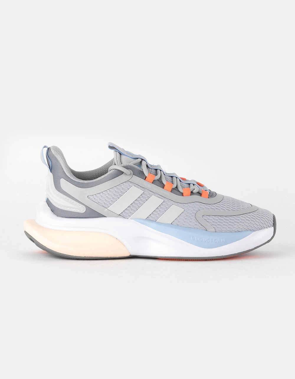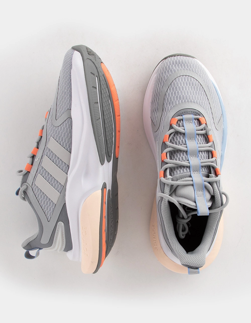 adidas AlphaBounce+ Running Shoes. Go for that walk around the neighborhood or head to the gym in a pair of adidas Alphabounce+ shoes. The mesh upper is soft and breathable to keep you comfortable as you go. A Bounce midsole makes the ride soft and springy while Cloudfoam on the heel cushions every step, so you can cruise smoothly through the day. Regular fit. Lace closure. Mesh upper. Textile lining. Hybrid Bounce and Cloudfoam midsole. Adiwear outsole. Upper contains a minimum of 50% recycled content. Imported.