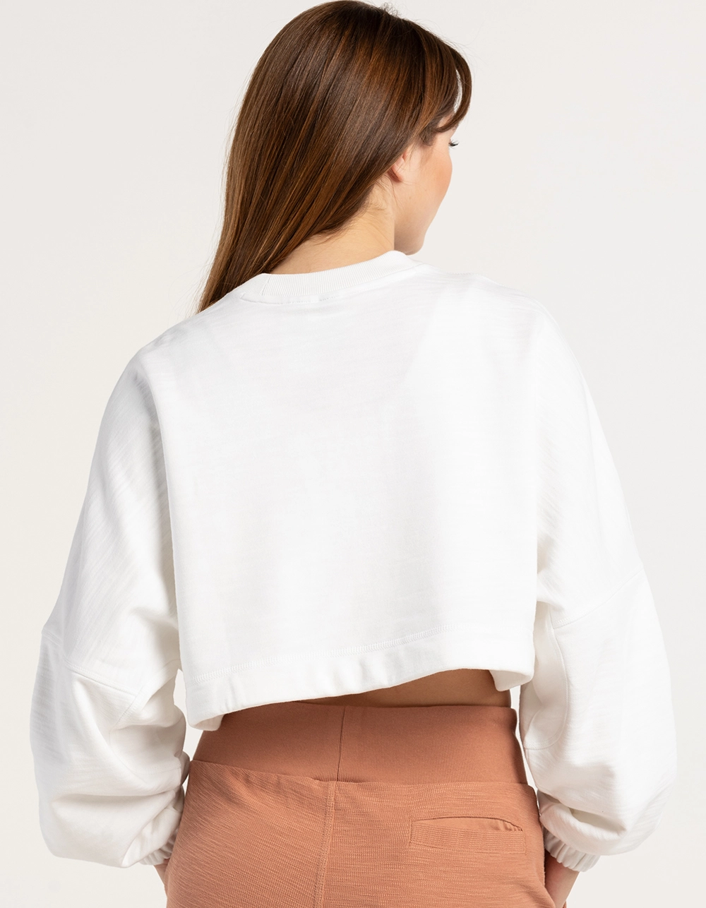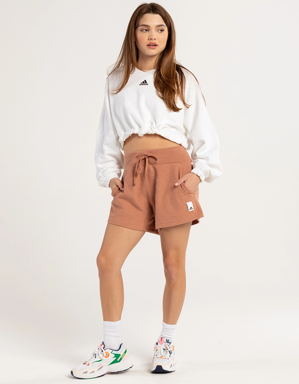 Adidas Dance Cropped Crewneck Sweatshirt. Logo screened on center chest. Ribbed crew neckline. Elastic cuffed long sleeves. Cropped hem with drawcord for a customizable fit. 80% Cotton, 20% Polyester. Machine wash. Imported.