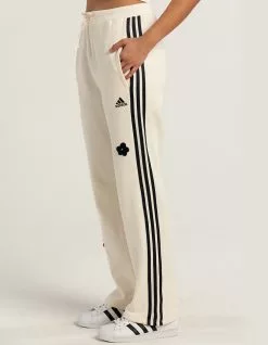 Adidas Flower Sweatpants. Classic 3-stripes down the pantlegs featuring flower patches throughout. Elasticized waist with drawcord. Welt pockets. Straight leg. Approx. inseam: 30”. 100% Cotton. Machine wash. Imported.
