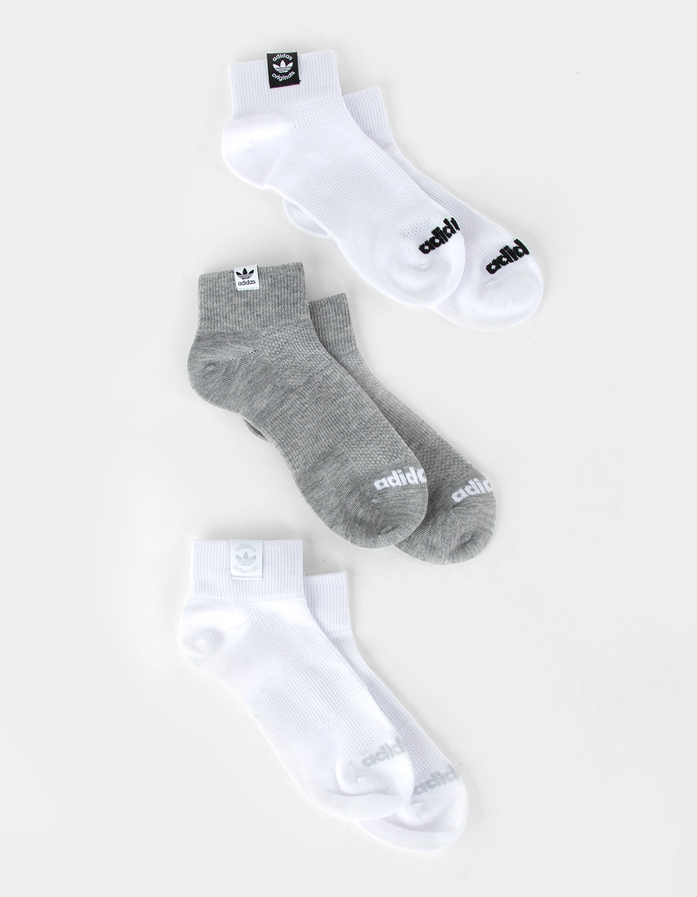 Adidas Originals 3 Pack Low Cut Socks. Looking for a happy medium between crew socks and no-shows? Meet these adidas low-cut socks. They hit just above the ankle, flashing brand pride as you move through your day. Arch compression supports each and every step. Low-cut length. Three pairs per pack. Ribbed cuff. 91% Polyester, 7% Natural Latex Rubber, 2% Elastane. Machine wash. Imported.