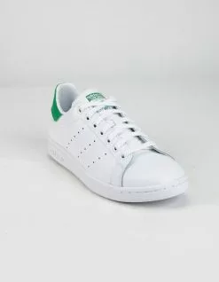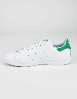 Adidas Stan Smith Shoes. Roll with the classic. Back in the day, Stan Smith won big on the tennis court. Slide into the adidas shoe worthy of his name and you’ll win big on the streets. Top to bottom, these shoes capture the essential style of the 1971 original, with a minimalist leather build and clean trim. Regular fit. Lace closure. Leather upper. Timeless tennis trainers. Leather lining and OrthoLite® sockliner. Rubber cupsole. Imported.
