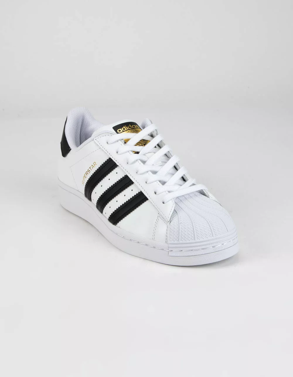 Adidas Superstar Shoes. The adidas Superstar Shoes first stepped onto the basketball hardwood in 1970. It didn’t take long for them to make the leap from athletic gear to streetwear staple. These shoes show off the materials, proportions and style that made the original such a legend. They’ve got a smooth leather upper with sporty 3-Stripes and a heel tab. They’re finished off with the world-famous rubber shell toe. Leather upper. Comfortable, supportive feel. Leather lining. Rubber outsole. Imported.