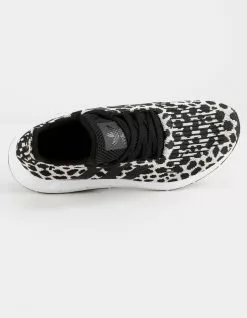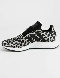 adidas Swift Run shoes. The Swift distills elements from ’80s running designs and adds a modern feel. These knit shoes show off welded details and an exotic leopard print. They come with a supportive, sock-like feel and are built for all-day ease with a cushy midsole. Knit upper with embroidered details. Stretch-knit lining. Rubber outsole. Imported.