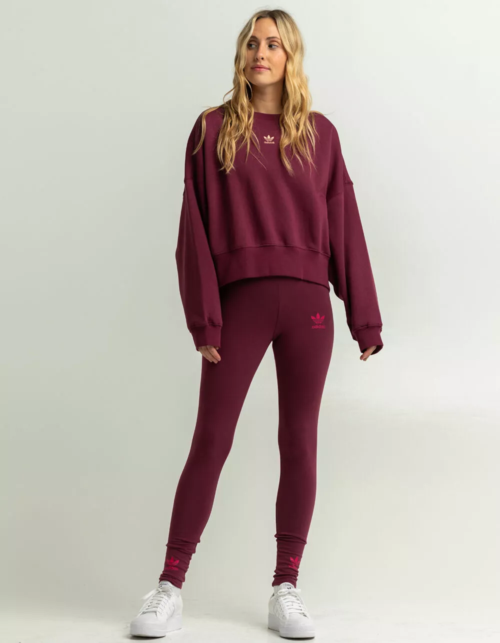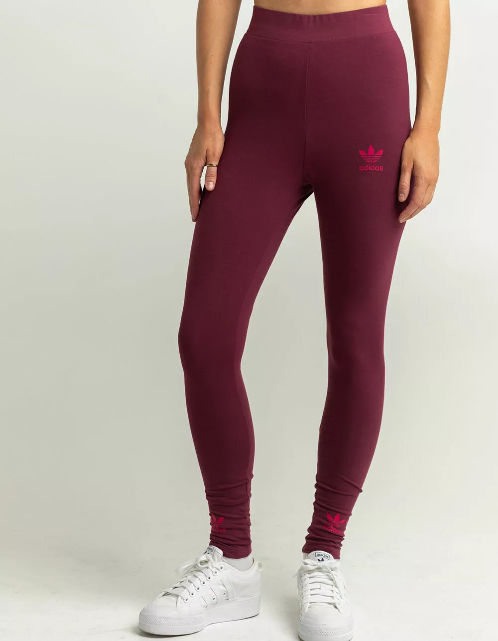 Adidas Trefoil Logo Leggings. Stretchy cotton leggings. Logo screened on left leg and both ankles. Elastic waist. Fitted throughout. Approx. inseam: 28″. Machine Wash. 93% Cotton 7% Spandex. Imported.