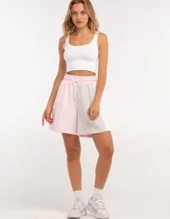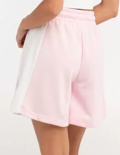 Adidas Color Block Shorts. Color blocked Design. Rubber branding at right leg. Elastic drawstring waist. Side seam hand pockets. Back patch pocket. Approx. Outseam: 18″. 70% Cotton 30% Recycled polyester. Machine wash. Imported.