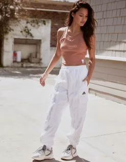 adidas Dance Cargo Pants. Slouchy through the legs. Buckled at the ankles. These adidas cargo pants have a borrowed-from-the-boy vibe. Made from tough nylon that holds its shape and lined with mesh to let air flow, these pants will take you effortlessly from dance studio to your favorite coffee spot. Loose fit. Drawcord on elastic waist. Front leg zips and ankle buckle. Side pockets and cargo pockets. Approx. inseam: 29.5” Shell: 100% recycled nylon plain weave. Lining: 100% recycled polyester mesh. Imported.