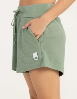 Adidas Lounge Shorts. Elasticized waist with drawcord for a customized fit. Slant hand pockets. Back welt pocket. Woven Adidas label on left leg. Approx. inseam: 5”. 100% Cotton. Machine wash. Imported.