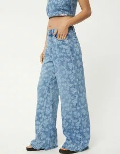 Afends Fink Gigi Flared Denim Jeans. Travel back in time with some floral flared jeans. Inspired by the iconic 90s flared leg, these jeans offer a flattering high-rise waist and inner leg paneling for a super-wide loose leg design. In our eco-friendly midweight organic cotton and hemp denim construction and signature wash colors, the Gigi’s reminiscent of the beloved vintage kind. Zip and button fly. Five pocket combo. Belt-looped waist. Signature branded patch on waistband. 100% Organic Cotton Denim. Machine wash. Imported.