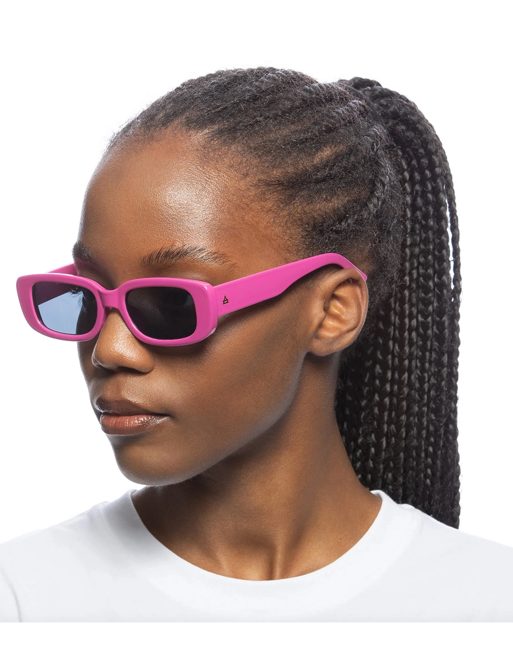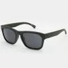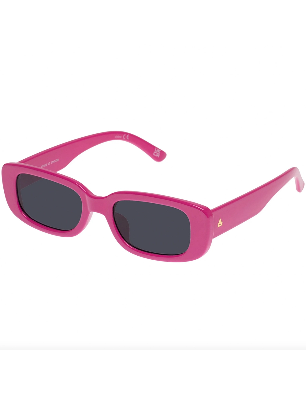 AIRE Ceres Sunglasses. 90s slimline rectangle. Medium size fit. Most loved look, perfect for every season. AIRE gold foil logo detailing on both temples. Made from GRS certified recycled polycarbonate frame material. Packaged with AIRE khaki sunglass pouch made from recycled materials. Imported.