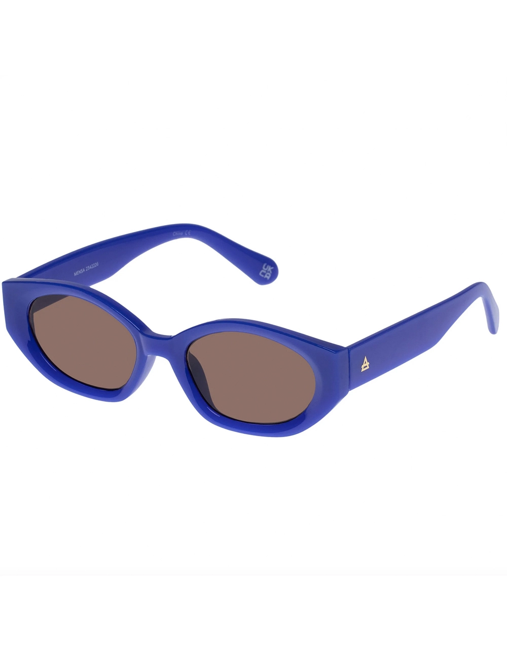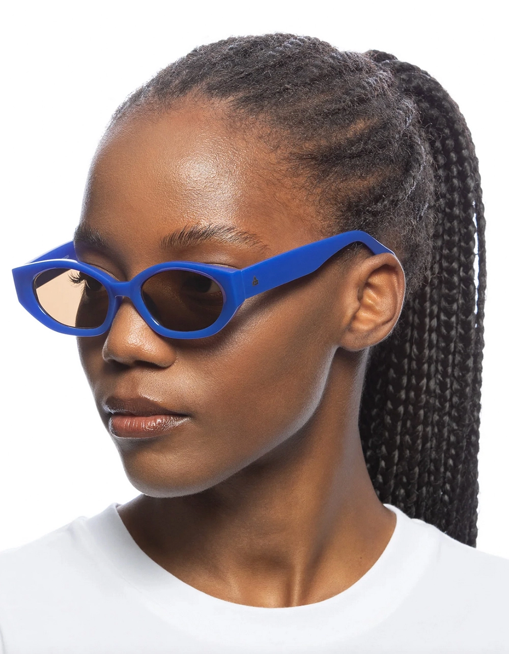 AIRE Mensa Sunglasses. A modern take on the 90s oval shape featuring kicked up angles. Small size fit. An everyday wardrobe staple. AIRE gold foil logo detailing on both temples. Made from GRS certified recycled polycarbonate frame material. Packaged with AIRE khaki sunglass pouch made from recycled materials. Imported.