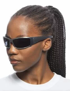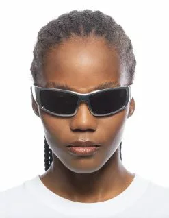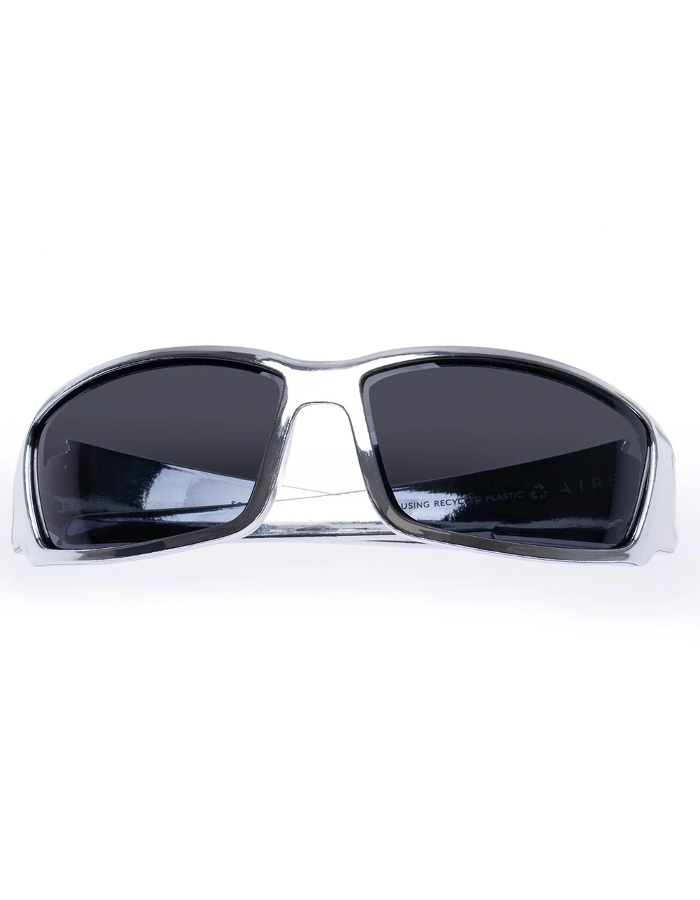AIRE Scorpian Sunglasses. From the runway, the ultimate and iconic sports wrap. Large size fit. Sleek, trending design. AIRE gold foil logo detailing on both temples. Made from GRS certified recycled polycarbonate frame material. Packaged with AIRE khaki sunglass pouch made from recycled materials. Imported.