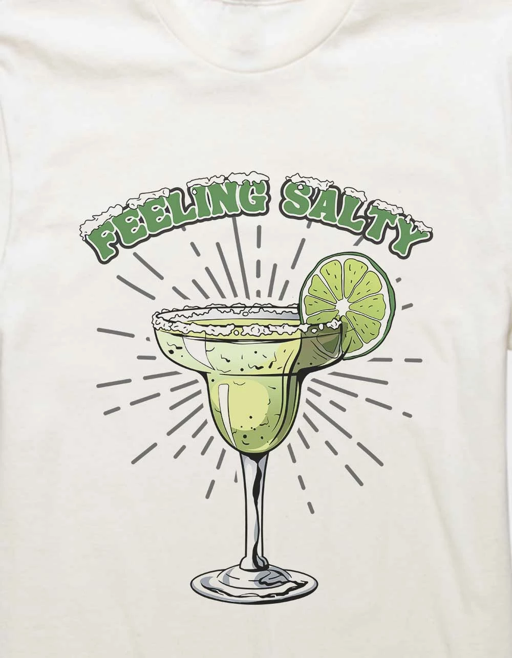 You won’t feel salty when you’re wearing this fun design! Featuring a playful twist on a margarita with a great pun, this tee will be sure to spice up the party. 100% preshrunk ring spun cotton. This item is unisex fit and sizing.