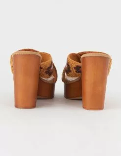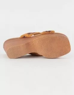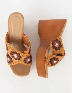 Bamboo Crochet Wedge Sandals. Slip-on style. Two straps with crochet detail. Approximate heel height: 4.5″. Approximate platform height: 1″. Imported.