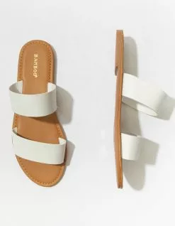 Bamboo Double Strap sandals. Dual faux leather straps and footbed. Slip-on design. Rubber outsole. Imported.