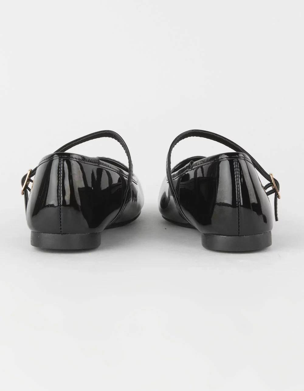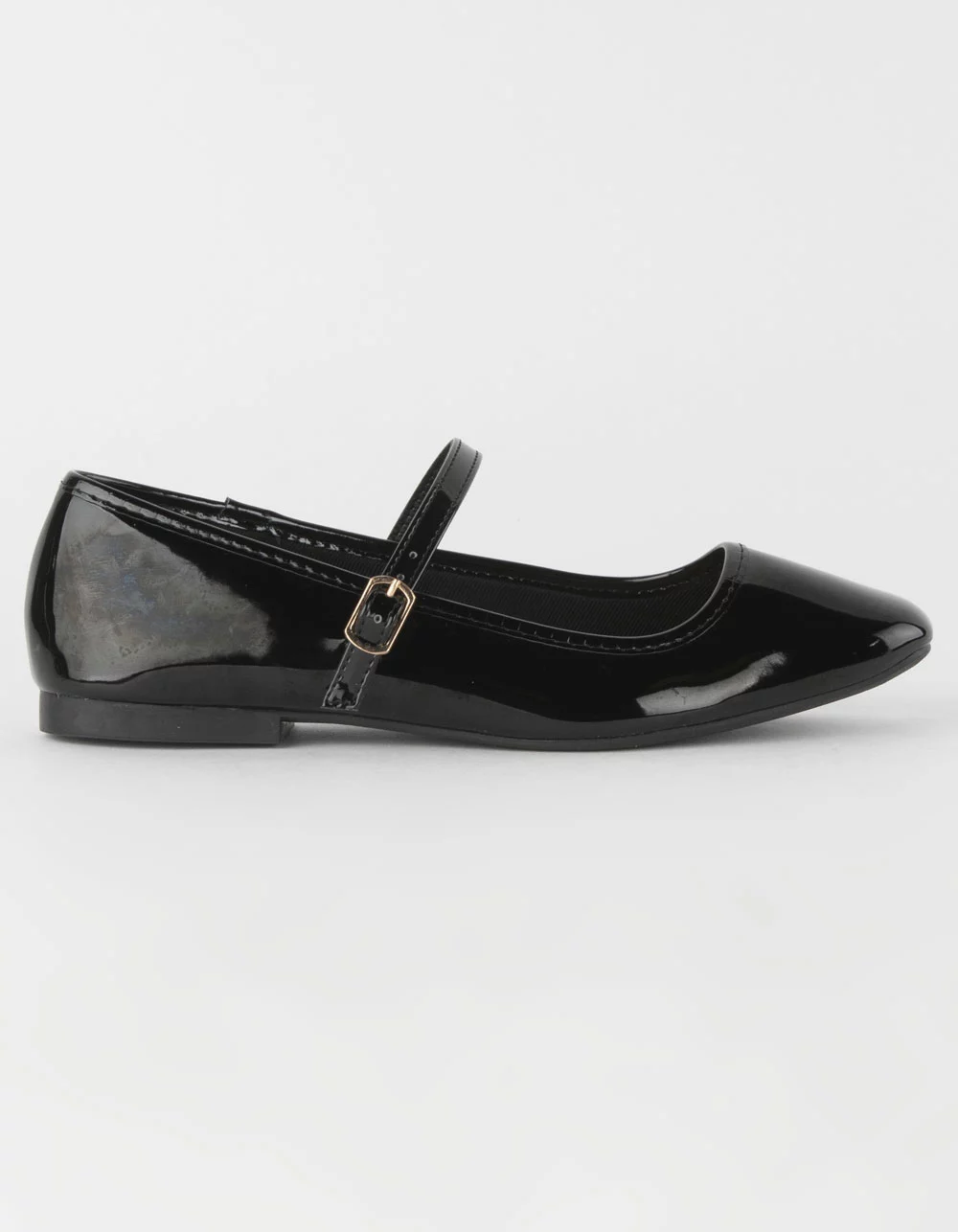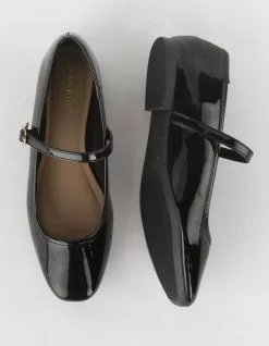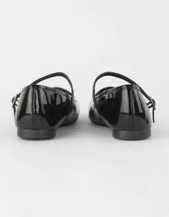 Bamboo Sweep Ballet Flats. Faux leather upper. Pin buckle strap across top of foot. Square toe. Cushioned footbed. Rubber outsole. All manmade material. Imported.
