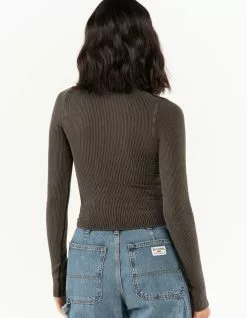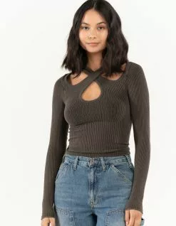 BDG Urban Outfitters Cross Neck Rib Top. Allover ribbed texture. Cross Neck styling. Long sleeves.Sweater knit. Crop hem. 69% Modal 26% Polyamide 5% Elastane. Machine wash. Imported.
