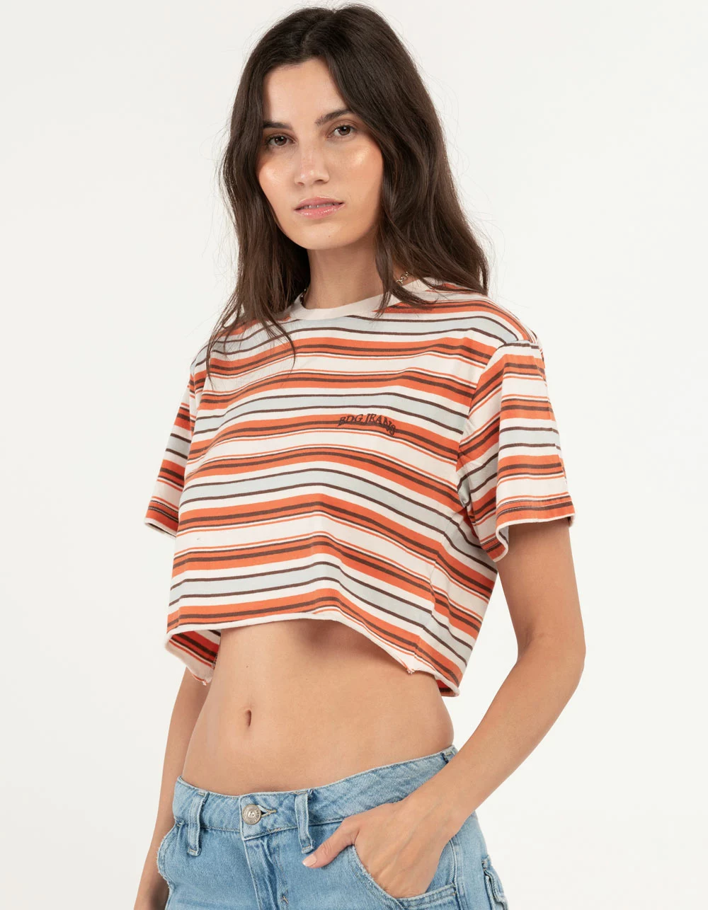 BDG Urban Outfitters Striped Boxy Tee. Allover stripe pattern.. Ribbed crew neckline. Short sleeves. Boxy fit. 100% Cotton. Machine wash. Imported.
