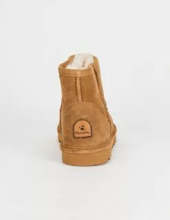 Bearpaw Alyssa Womens Booties. The 5 inch Alyssa is the perfect winter boot to show off your BEARPAW® socks or tights. So easy to pull on and off, you could wear it as a slipper too! Treated with NeverWet® technology for added protection against the elements. Cow suede upper. Sheepskin and wool blend lining. Skeepskin comfort footbed. Rubber outsole. Imported.