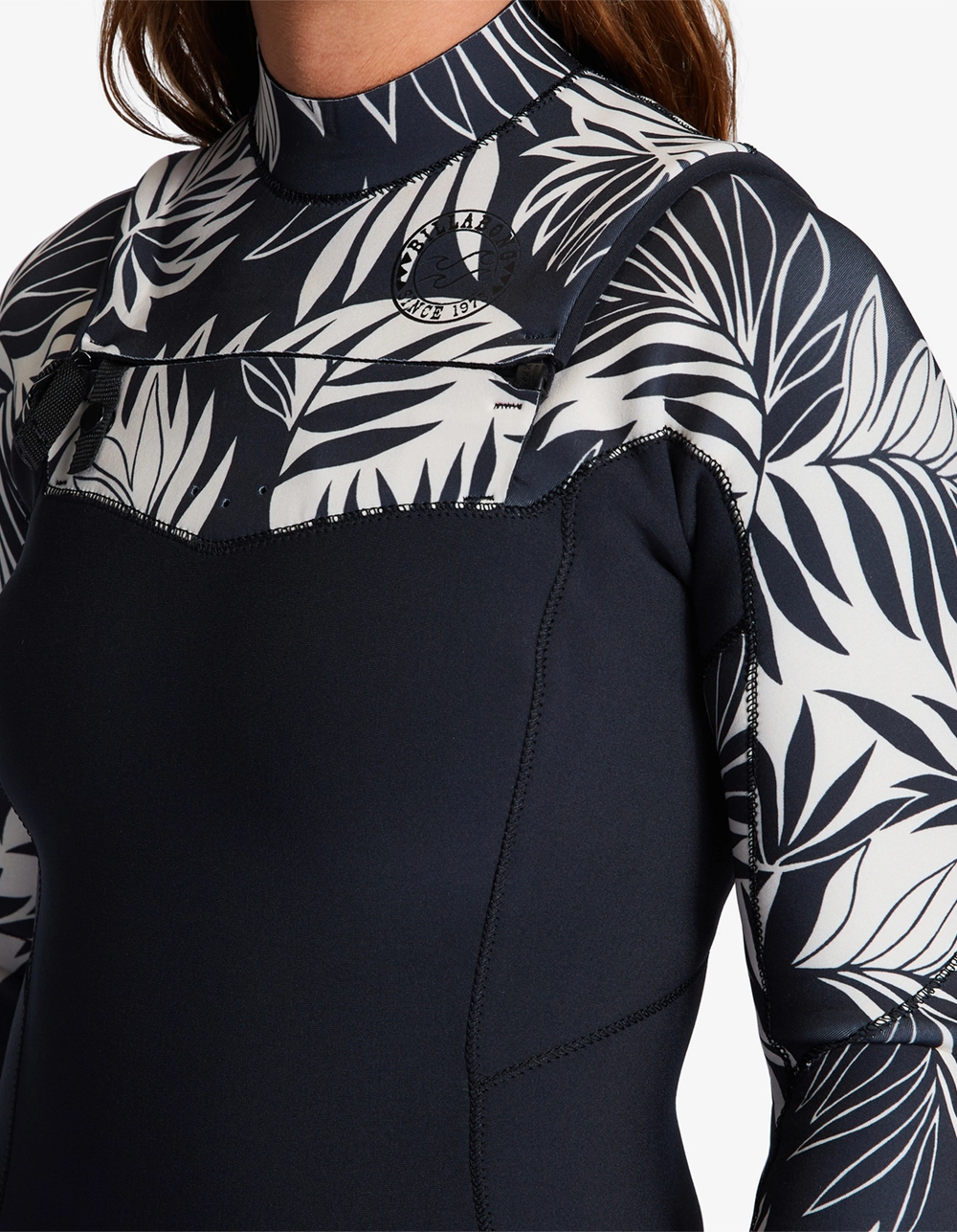 Billabong 3/2 Salty Dayz Chest Zip Full Wetsuit. Stand out in the line-up with signature style and progressive performance. Equipped with cutting-edge wetsuit technology, including a chest zip and a mix of Graphene Recycler Plus and Silicon Stretch thermal lining, the Surf Capsule Collection women’s full suit is customized with palm printed panels and a standout tone throughout. Combining style, performance, and sustainability, the Salty Dayz wetsuit features conscious construction with partially recycled Superlight Foam neoprene and water-based adhesives. Exterior fabric type: PRO STRETCH! – 100% Recycled. Interior fabric type: Graphene Comp. 80% Neoprene, 10% Nylon, 10% Polyester. Imported.