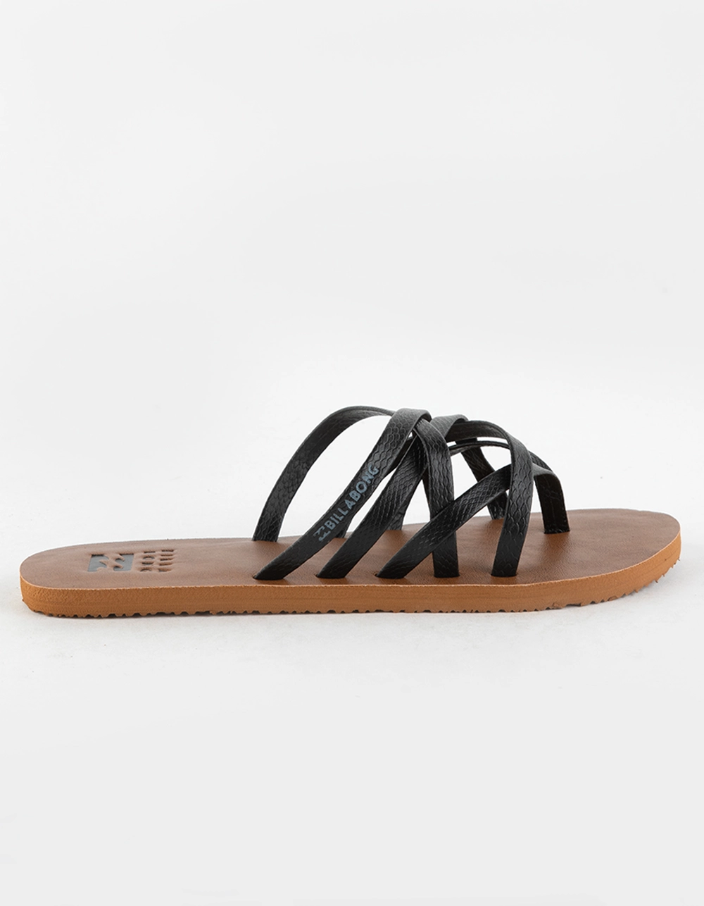 Billabong Addison Thong Sandal. This strappy sandal features a comfortable and lightweight design made with vegan friendly leather, and a flexible footbed that’s built to hold up strong. Imported.