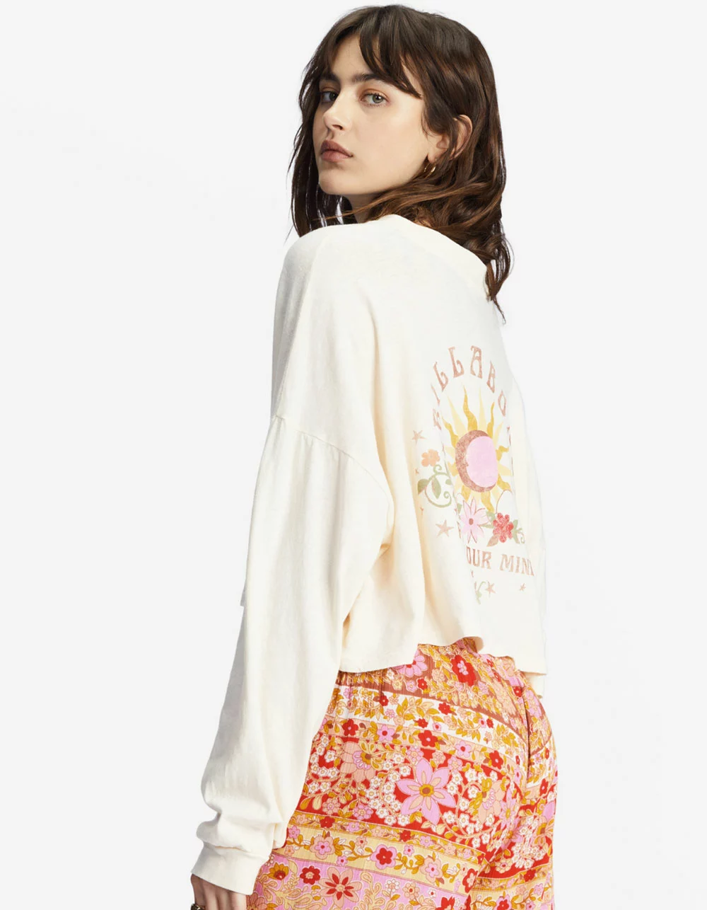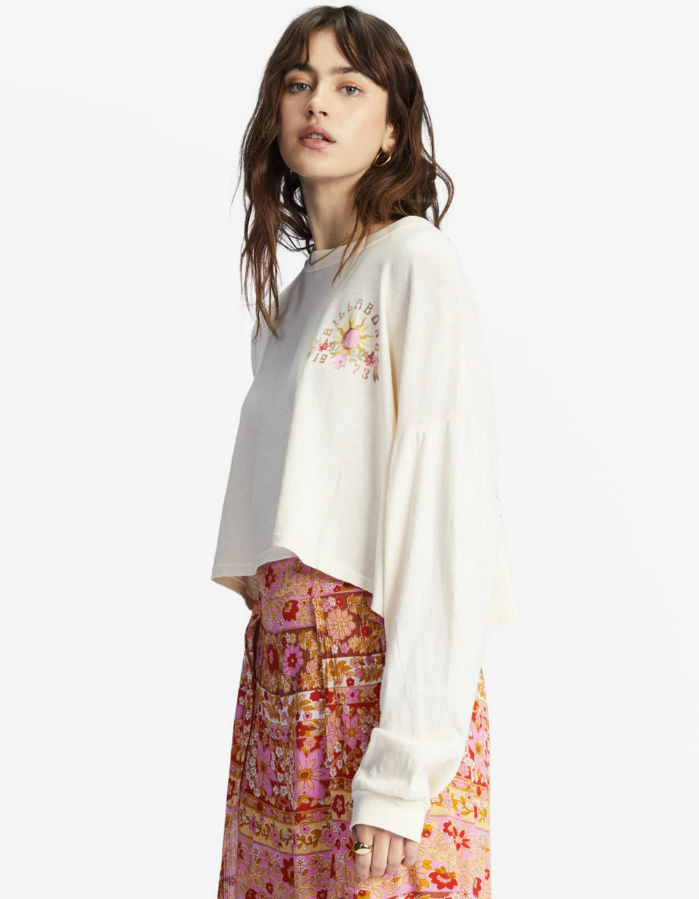 Billabong Beach Oversized Crop Top. No matter where you are or what you’re doing, every day is a beach day in the Beach Boyfriend Long Sleeve Crop Top. A graphic tee that will carry you through the seasons, this women’s long sleeve top offers a boxy fit with ribbing at the neck and graphic screen-prints on the chest and back. The fabric is made with recycled cotton jersey and treated with a premium garment dye to give it a soft vintage feel. Strange Love. Recycled cotton jersey blend. Pigment dyed with garment wash. Boxy fit. Crew neck. Long sleeves. Dropped shoulders. Hem Finish: Ribbed neck and cuffs. Assorted screen prints. 74% Cotton, 26% Recycled Cotton. Imported.