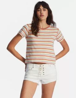Billabong Better Than Basic Tee. Made of soft recycled jersey fabric, this striped tee elevates your basics collection in a loosely-fitted shape with a contrasting ribbed neckband. Body skimming fit. Crewneck. Short sleeves. Clamp label at hem. 100% Cotton. Machine wash. Imported.