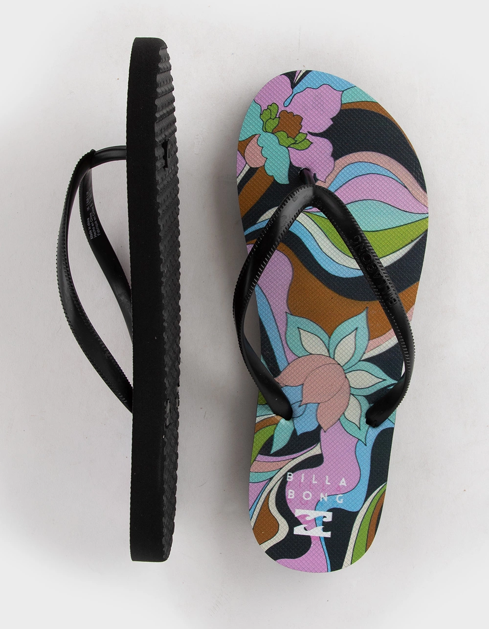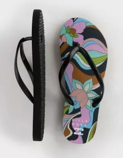 Billabong Dama Thong Sandals. You’d rather be barefoot, but these lightweight rubber sandals are the next best thing. The Dama Sandal takes a twist on a classic thong by featuring a bold floral print. Nothing beats sandals that love the beach as much as you do. EVA rubber. Molded thong style strap. Printed footbed. Billabong logo at heel. Imported.
