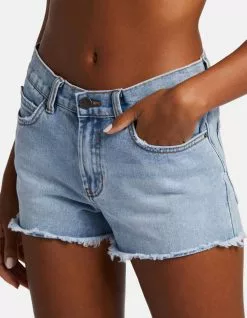 Billabong Drift Away Denim Shorts. Seriously sanded and washed by the waves, get the ultimate laid-back look with the Drift Away Shorts. These distressed denim shorts are complete with raw edges and a stringy frayed hem. The mid-rise fit delivers a not too tight, not too loose silhouette you’re going to love. Cotton denim. Mid-weight feel. Mid-rise. Zip fly with button front closure. Frayed, raw hem. Deconstructed look. 5-pocket styling. Denim fold label at back waistband. Approx Inseam: 2″. 100% Cotton. Machine wash. Imported.