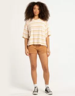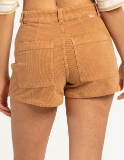 Billabong Free Fall Corduroy Shorts. The Free Fall corduroy short pairs high-waisted perfection with a velvety-soft feel. Timeless and essential, they feature a zippered fly and handy patch pockets. Button and fly closure. Back patch pockets. Logo flag label. 98% Cotton, 2% Elastane. Machine wash. Imported.