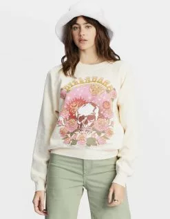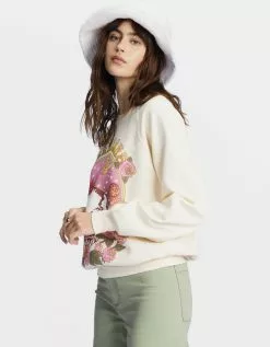 Billabong Here We Go Graphic Crewneck Sweatshirt. The Here We Go sweatshirt from our Castles In The Sand collection keeps you cozy with a relaxed fit and soft mid-weight feel. Featuring raglan sleeves and a large graphic at the chest, this women’s crewneck sweatshirt is pigment-dyed to give it a perfectly lived-in look. Mid-weight feel fleece fabric. Relaxed fit. Pigment garment dye. Rib bands. Raglan armhole. 80% Cotton, 20% Polyester. Imported.