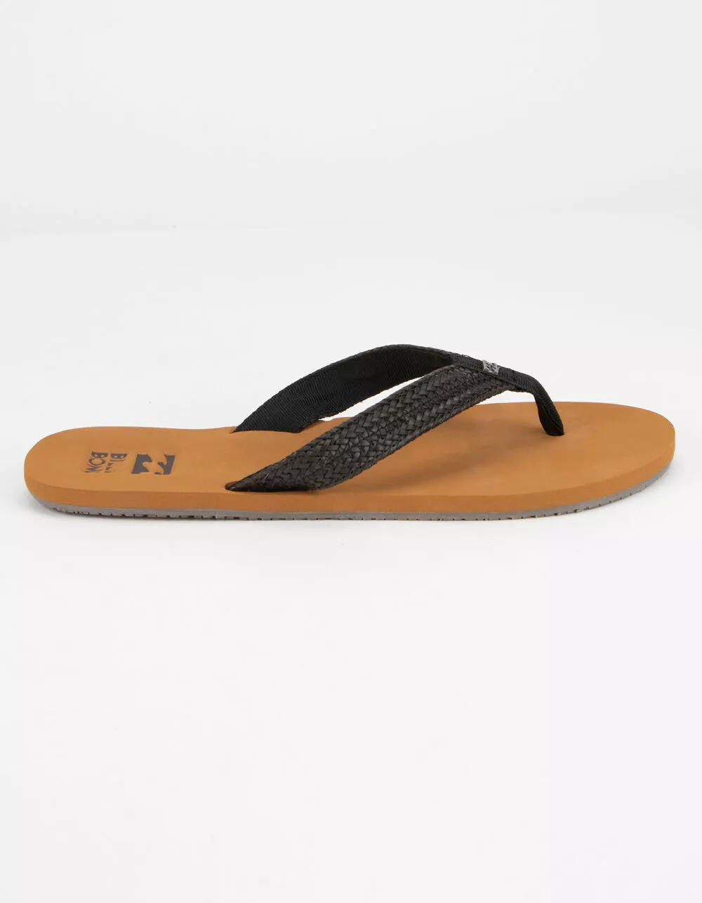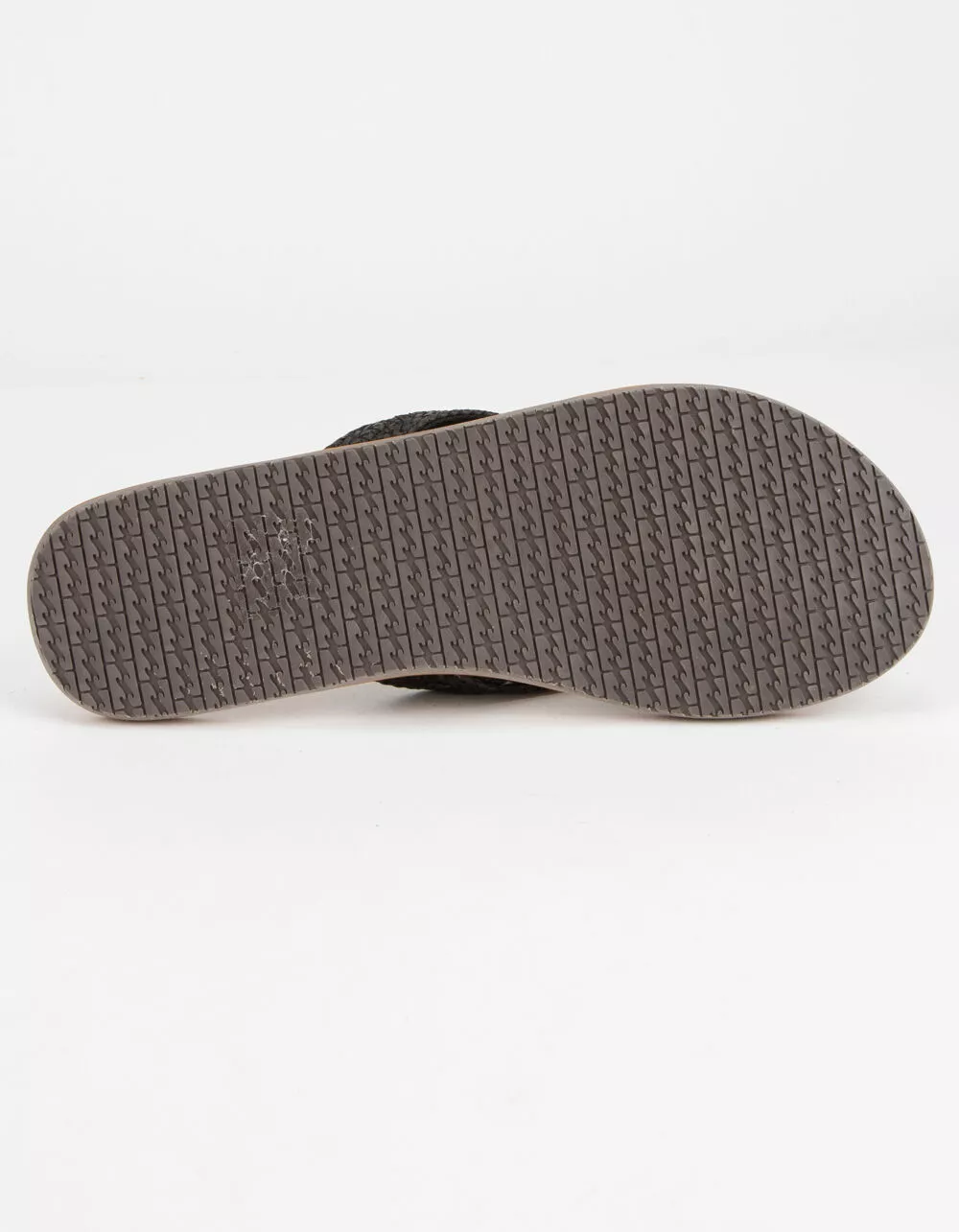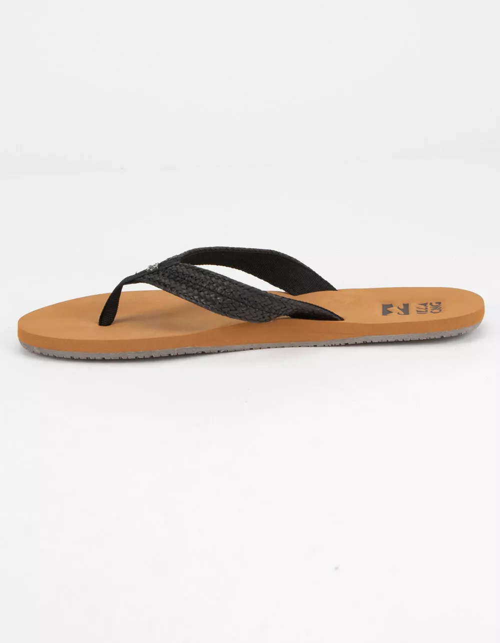 Billabong Kai flip flops. Braided faux leather upper with metal logo pin. Marshmellow EVA footbed. Rubber outsole. Imported.