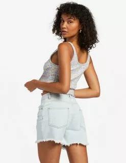 Billabong Notch Tank Top. Made of ribbed knit-blend fabric, this Essentials Collection notched tank top has a fitted shape and baby hem ruffles to give it a slight throwback feel. Allover print. Split neck detail. Fitted fit. Clamp label at hem. 96% Cotton 4% Elastane. Machine wash. Imported.