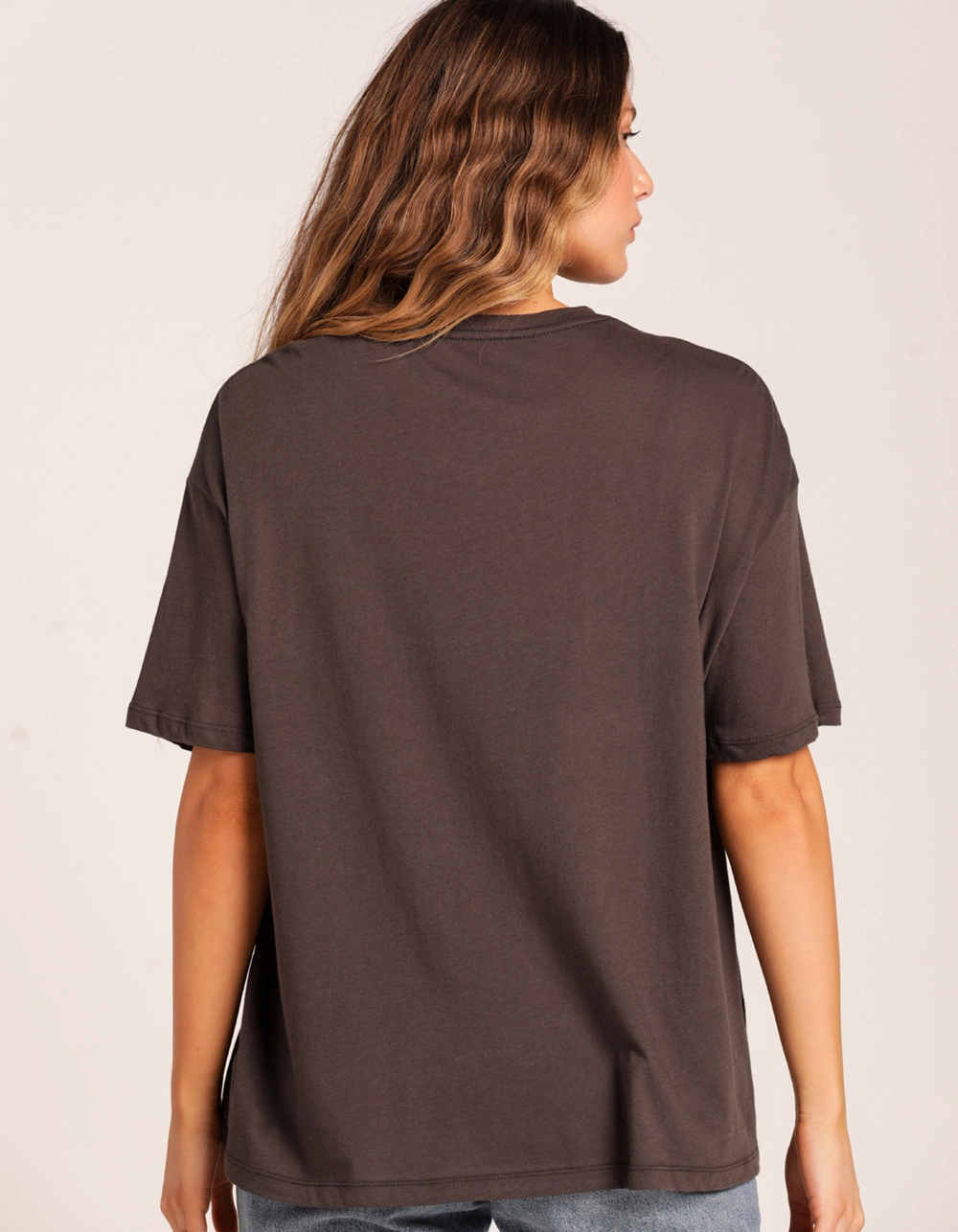 Billabong Secret Oversized Tee. Large graphic on front. Crewneck. Short sleeve. Oversized fit. 100% Cotton. Machine wash. Imported.