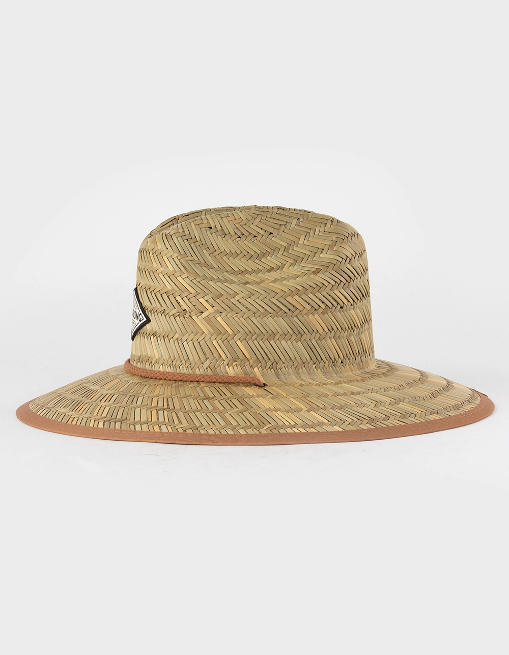 Billabong Tipton Lifeguard Straw Hat. Drawcord binding and contrast brim. Billabong logo patch branding. Adjustable drawcord. Wide brim with printed fabric underneath brim. 100% Straw. Imported.