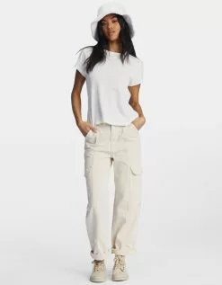 Billabong Wall To Wall Denim Cargo Pants. The Wall To Wall pant from our Essentials collection is a contemporary take on old-school straight-leg cargo pants— a little military, but also kinda Y2K. Crafted with eco-conscious cotton denim, they’re cut just the way we like them: high and fitted at the waist, easy through leg. Cotton. High waisted fit. Button and zipper fly closure. Logo flag label. Contrast stitching. 100% Cotton. Imported.