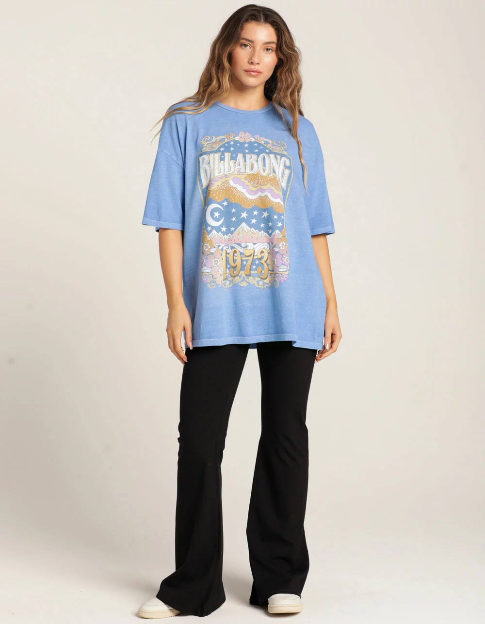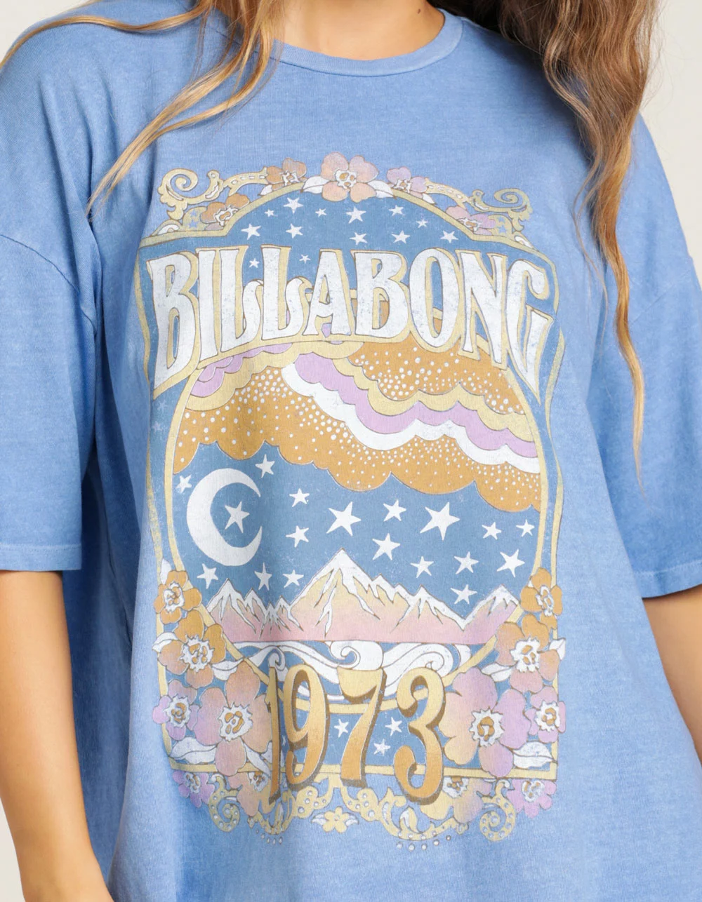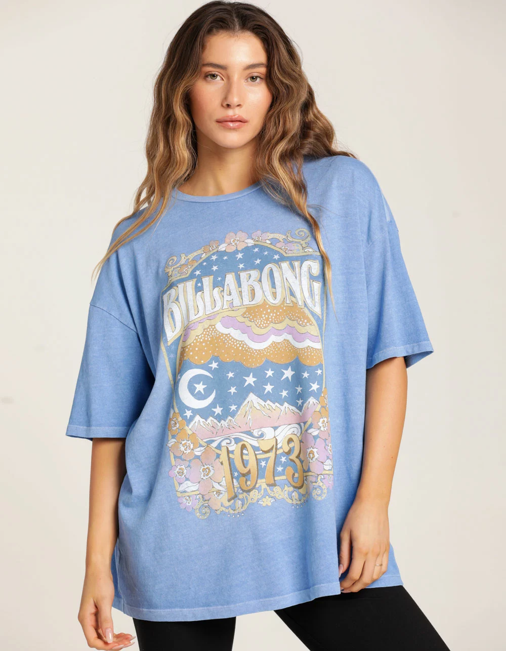 Billabong Wild Mountain Tee. Large graphic on front. Oversized fit. Crewneck. Short sleeve. 100% Cotton. Machine wash. Imported.