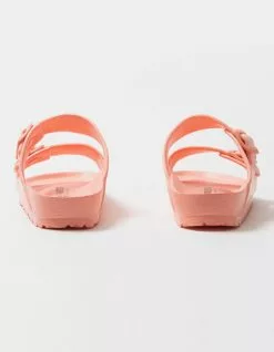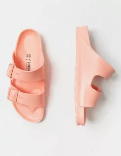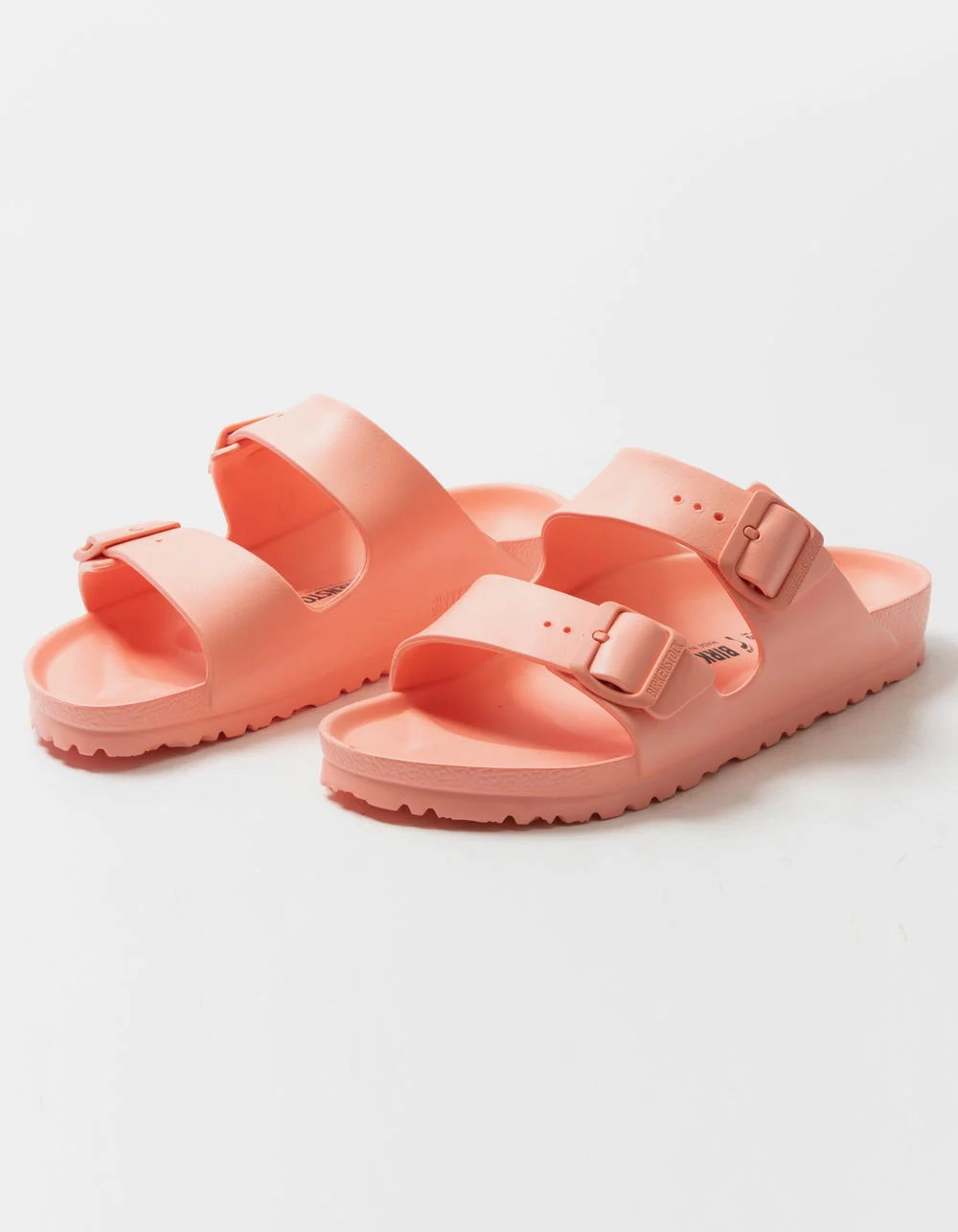 Birkenstock Arizona EVA Sandals. The legendary two-strap design from BIRKENSTOCK – the Arizona. Modeled on the cork original, this sandal is made from ultra lightweight and highly flexible EVA. These sandals are shock absorbing, waterproof, and skin-friendly. Wear them at the beach, in the garden, or around the gym and after workouts. It’s the perfect addition to your classic BIRKENSTOCK sandals. Anatomically shaped BIRKENSTOCK footbed made from EVA. Molded EVA. Two straps, each with an individually adjustable pin buckle; waterproof, washable, ultra lightweight. Imported.