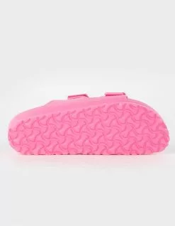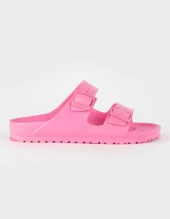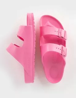 Birkenstock Arizona EVA Sandals. The legendary two-strap design from Birkenstock – the Arizona. Modeled on the cork original, this sandal is made from ultra lightweight and highly flexible EVA. These sandals are shock absorbing, waterproof, and skin-friendly. Wear them at the beach, in the garden, or around the gym and after workouts. It’s the perfect addition to your classic Birkenstock sandals. Imported.