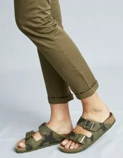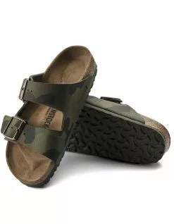 Birkenstock Arizona Slide Sandals. The legendary two-strap design from BIRKENSTOCK – the Arizona. Iconic style complemented with the signature comfort of the BIRKENSTOCK footbed. Shown in camo Birko-Flor®.