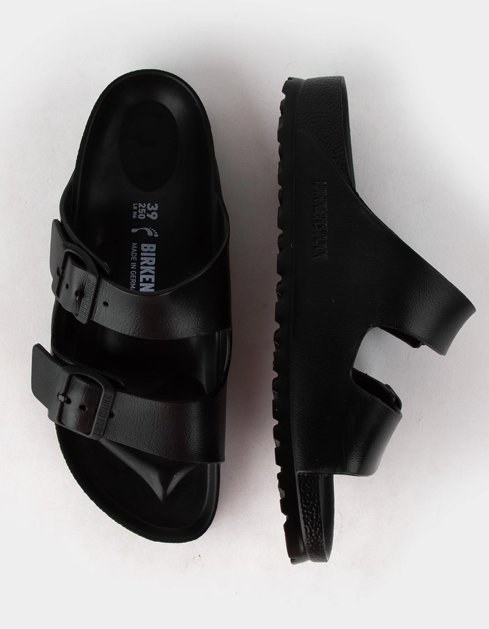 Birkenstock Arizona Sandals. The legendary two-strap design from Birkenstock – the Arizona. Modeled on the cork original, this sandal is made from ultra lightweight and highly flexible EVA. These sandals are shock absorbing, waterproof, and skin-friendly. Wear them at the beach, in the garden, or around the gym and after workouts. It’s the perfect addition to your classic Birkenstock sandals. Imported.