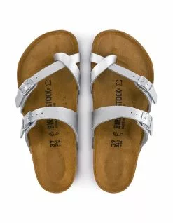 Birkenstock Mayari Sandals. The Mayari from BIRKENSTOCK – an elegantly comfortable sandal with adjustable, crisscrossing straps that form a single loop around the toe. Classic support and adjustability, designed beautifully. Shown in Birko-Flor®.